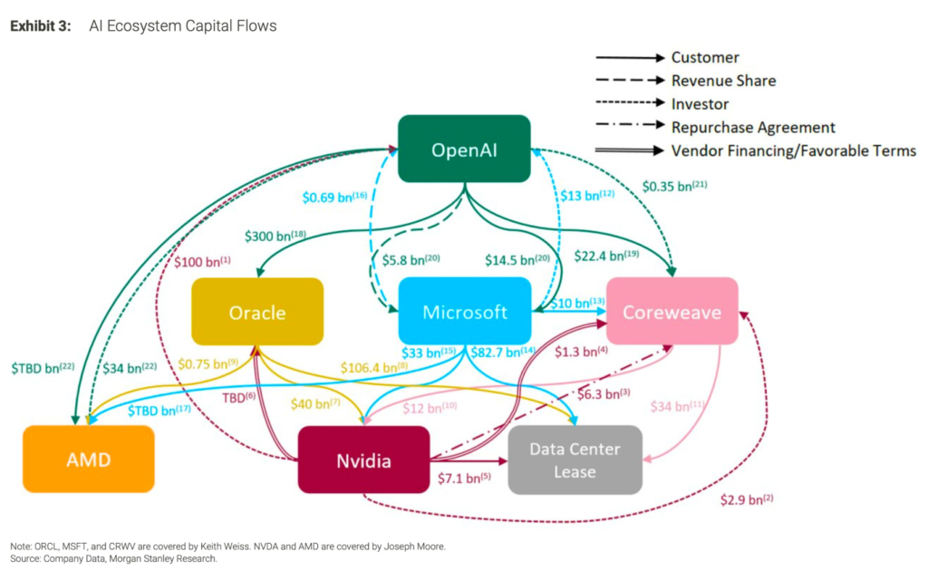 OpenAI & AMDAMDReceives payment for chip orders.Direct Revenue: OpenAI pays AMD for GPUs, generating “tens of billions” in revenue for AMD.Issues warrants for up to 10% of the company to OpenAI.